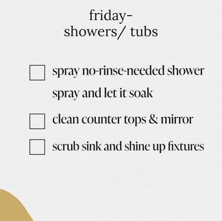I know, I know. Believe it or not, we've been there too. Cleaning. is. hard. and the motivation for it is so hard to find. It likes to hide from us. it's hard to find the motivation OR the time,even, to clean your home. With everything going on in the busy momma's life, it seems that the last thing on your task list is to "clean the bathroom" or "dust the baseboards". It all seems pointless after the day is over, and then you wake up feeling a sense of urgency to get it all done at once- and, ya' burn out. This toxic cycle continues, until there is no room left for happy thoughts to coincide with the word 'cleaning'. We often associate our least favorite tasks with bad feelings. But if we want to change the way we feel about cleaning, we have to change the way we view it. Yes, this table will get completely dirty in 5 minutes after my kids eat lunch. But yes, it does make me feel good to know I am staying on top of things, and that my kids are eating on a table that's been sanitized. Turn cleaning into a hobby by simply finding a great podcast or an audiobook that you love. We're big fans of MWMH (ifykyk). 10 minutes is really all you need per day to keep on top of the things that really matter. We like to start with areas that get used the most. Here's an example of a list you can create: